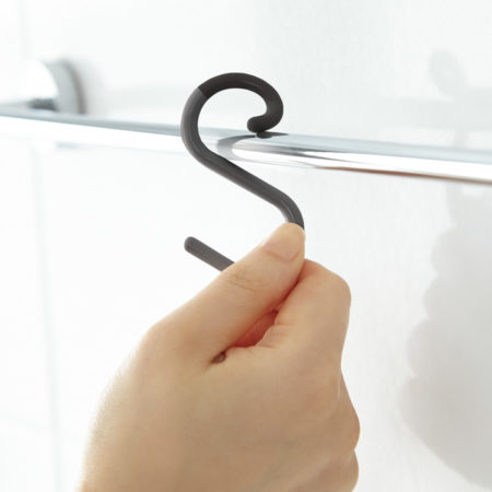 かたい部分とやわらかい部分。やわらかい部分がバーをかこうことで、S字フックにありがちな脱落を防止してくれます。