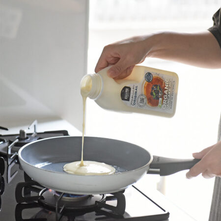 フライパンにどぼーっと流し込むだけなので、何かと合理的な気がしますね。すごい・・・