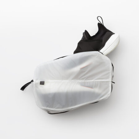 外見は普通のシューズバッグに見えますが、中が2つのスペースに分かれていて、左右それぞれを個別に収納できます。