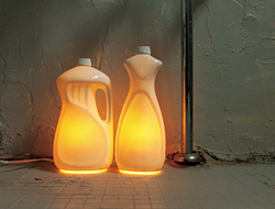 とても照明とは思えないかたち。どこかで見たことあるなぁというのもそのはず、洗剤ボトルのかたちをした照明です。