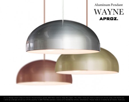 お椀をひっくりかえしたようなカタチの照明。ペンダントライトですっとおりてぼわっとふくらむシルエットは、シンプルですが迫力があります。