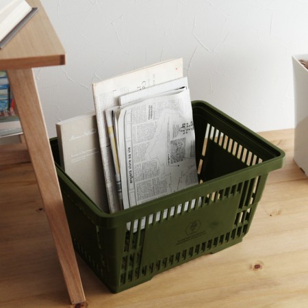 まさに色やデザインの調整で、お洒落風にした買い物カゴ。いかにもな配色ではないのでどことなくシック。そして金属にはないプラスチック独特のカジュアル感が良いですね。
